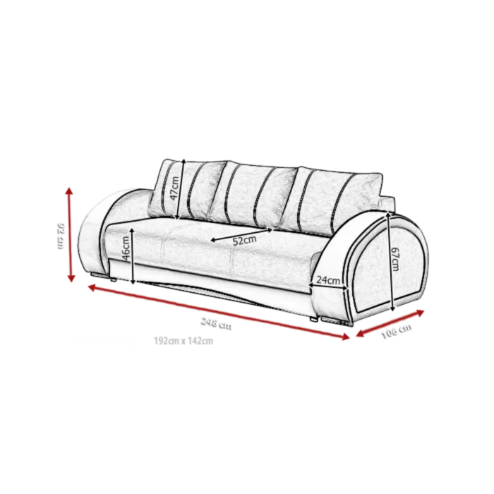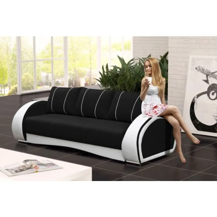 Moderni kavč TALIA je narejen iz kvalitetnega blaga. Kavč je vzmeten z Bonell vzmetenjem, zato je spanje na njem udobno. Pri raztegnitvi vam pomaga mehanizem. Kavč ima predal za spravljanje posteljnine.