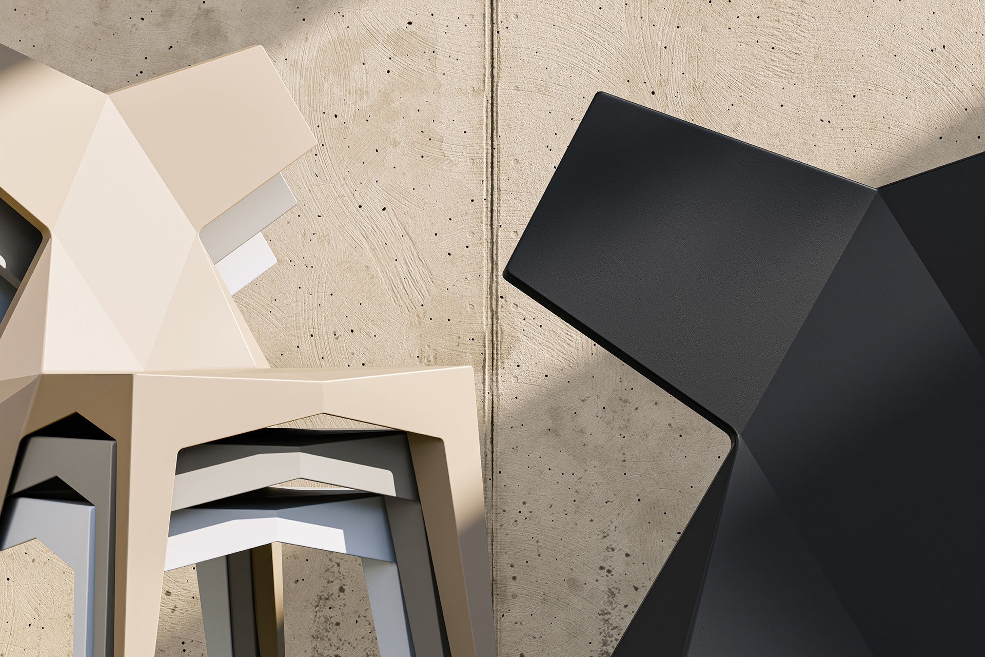 Izdelan je iz polipropilena, ojačanega s steklenimi vlakni, s pomočjo tehnologije plinske injekcije. Ta kombinacija zagotavlja izjemno trpežnost, odpornost na vremenske vplive in dolgo življenjsko dobo. Stol je 100 % reciklabilen, kar prispeva k trajnostnemu pristopu podjetja Vondom .