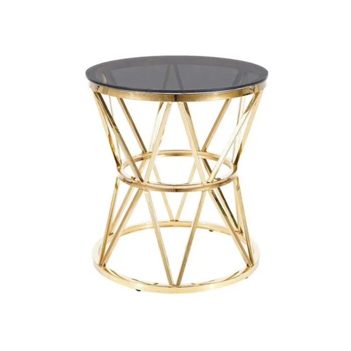 Klubska miza ARIES je modernega dizajna. Mizna plošča je narejena iz zadimljenega kaljenega stekla. Mizno podnožje je narejeno iz nerjavečega jekla v barvi zlata.