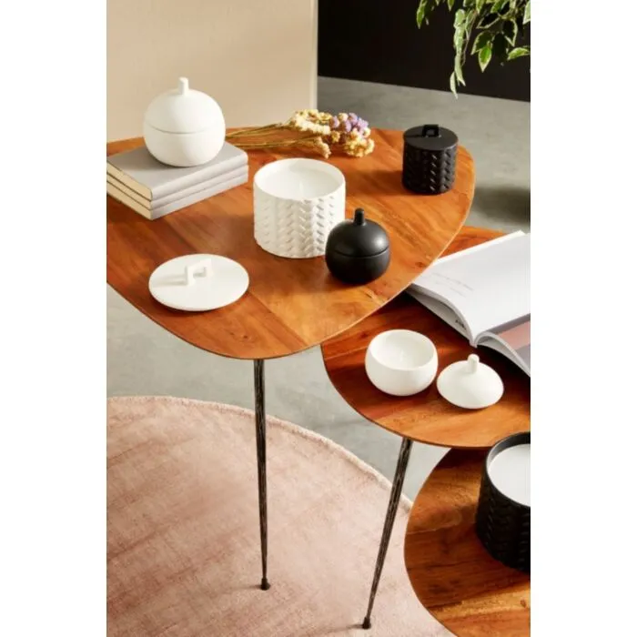 Klubske mizice BOSCAGE so elegantne mizice, ki se odlično podajo v vsak prostor. Dobavljive so v rjavo – črni barvni kombinaciji. Mizna plošča je narejena iz lesa manga, kar pripomore k elegantnemu videzu. Klubske mizice imajo štiri kovinske noge, ki doprinesejo eleganco in dodatno stabilnost.