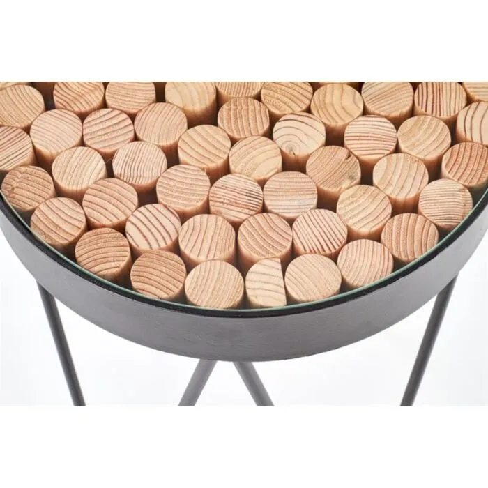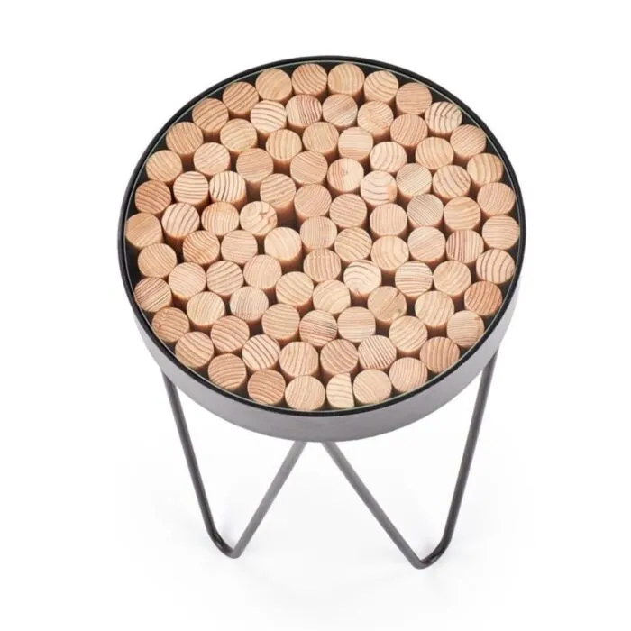 Klubska miza FLORA  z njenim zanimivim izgledom bo popestrila vsako dnevno sobo. Plošča mize je  iz manjših kosov lesa macesna. Plošča je zaščitena s steklom. Podnožje mize je iz lakiranega jekla v črni barvi. Dobavljiva je v barvi kot na sliki.