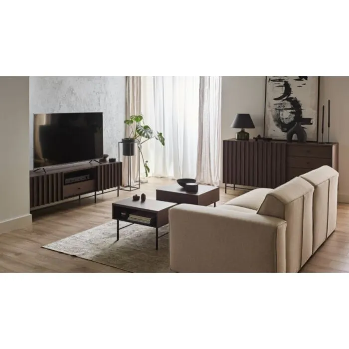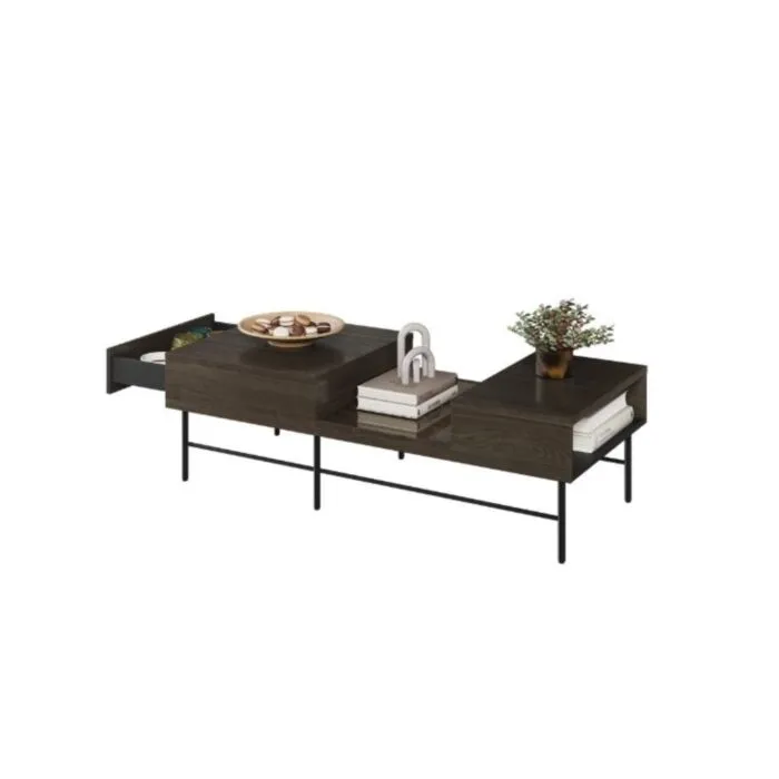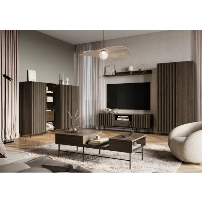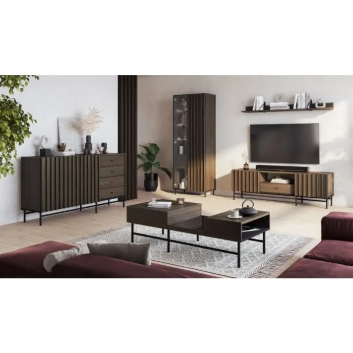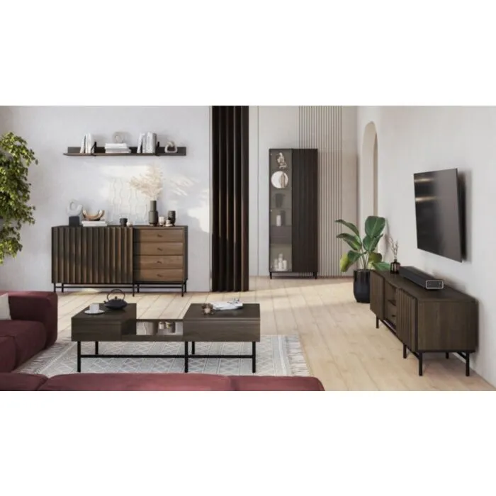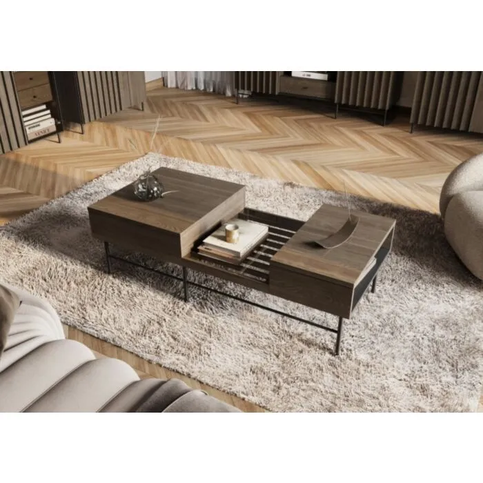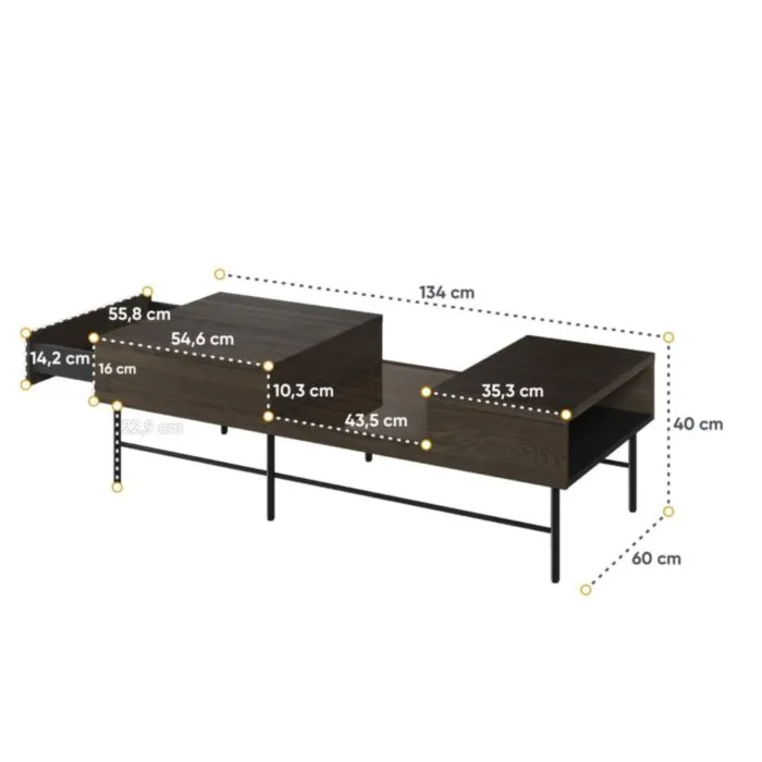 Klubska miza HORIZON je moderen kos pohištva. Ni le praktična, temveč tudi dekorativna in elegantna. Zaradi svoje razporeditve se poda v vsak dnevni prostor. Narejena je iz laminirane plošče debeline 16 mm in 22 mm v rjavi barvi s kombinacijo črnega odtenka. Ima ABS robove, ki zagotavljajo večjo odpornost proti udarcem, vlagi in obrabi ter podaljšujejo njeno življenjsko dobo.