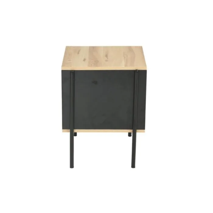 Moderna klubska mizica KARLAS – 40 x 40 x 51, je zelo kvalitetna in stabilna. Mizna plošča je narejena iz MDF-ja. Podnožje mizne plošče je narejeno iz kovine. Klubska mizica je primerna za vsako dnevno sobo. S svojo eleganco in obliko popestri vsak prostor. Mizica je v barvi hrast s kombinacijo črne mat.