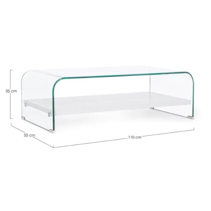 Klubska miza LINE WOOD v beli barvi je popolen kos pohištva za vašo dnevno sobo. Narejena je iz prozornega stekla debeline 12mm. Ima polico iz MDF-ja, ki je oblečena v videz lesa. Mizica je funkcionalna in visokokakovostna.