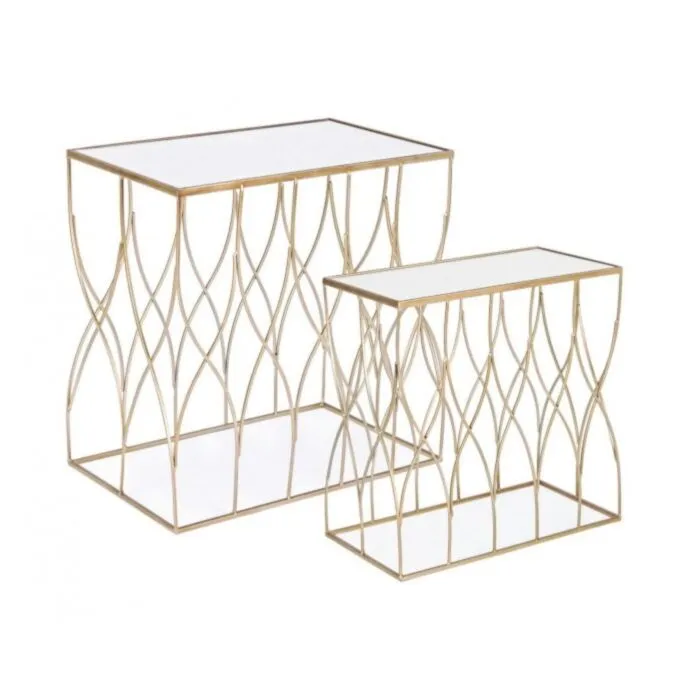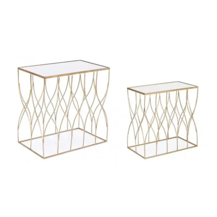 Klubska miza ELENOR je sestavljena iz kovinskega ogrodja, prašno barvanega (zlata barva). Mizna plošča je iz stekla.