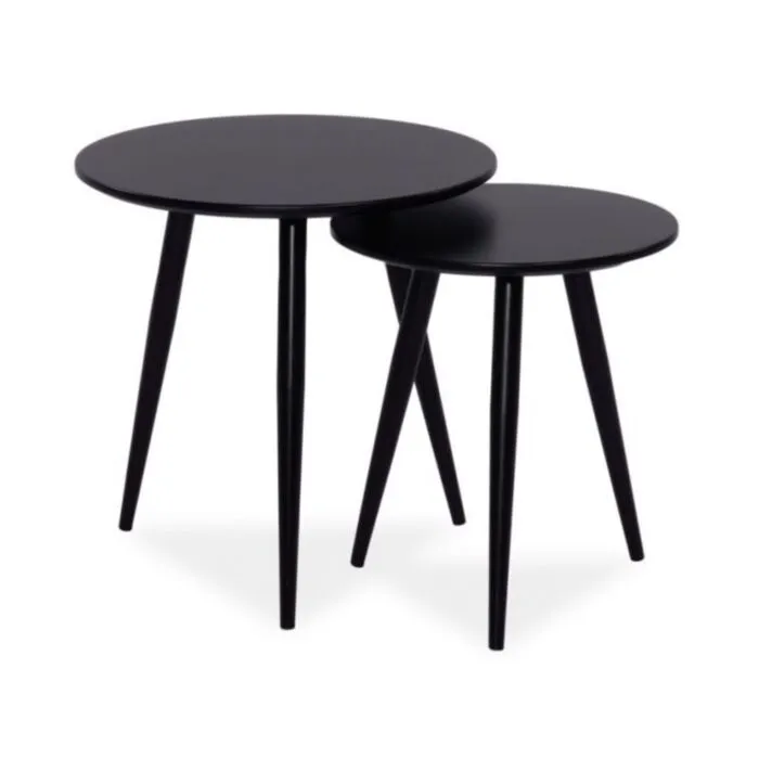 Moderna klub miza VITA 2 je kvalitetna ter stabilna in primerna za vsako dnevno sobo. V kompetu prejmete dve mizice različnih velikosti. Trenutno je miza prodajna uspešnica. Narejena je iz MDF-ja in kovine v črni barvi.