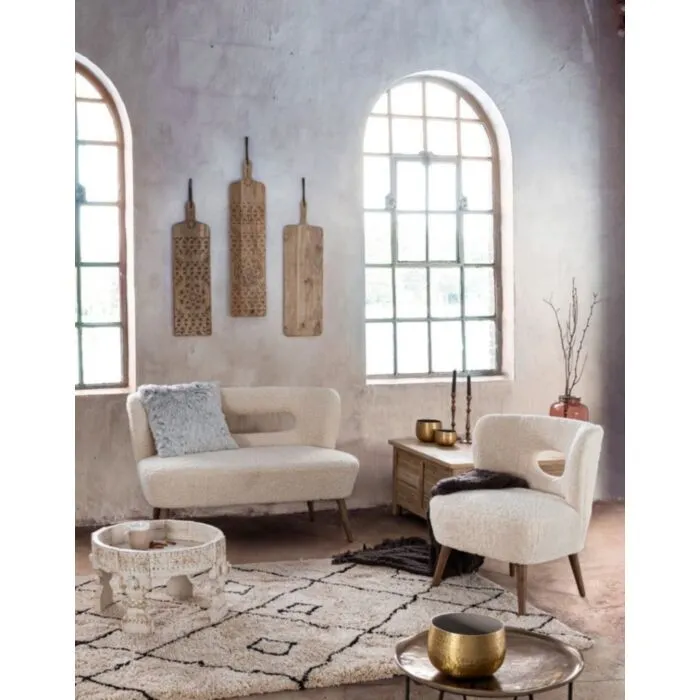 Klubska miza YASIR D50 bela je narejena iz lesa z izrezljanimi okraski. S svojo elegantno in posebno obliko, popestri vsak prostor. Ima štiri nogice, ki zagotavljajo dodatno stabilnost in eleganco.