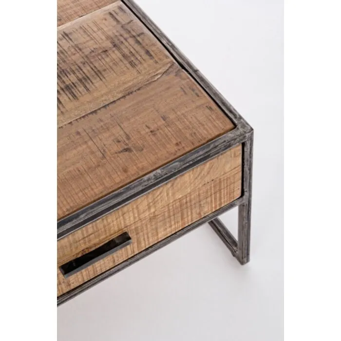 Klubska mizica 2C ELMER ima okvir iz lesa, noge so iz kovine v črni barvi. Ker je les obdelan ročno, so oblike in velikosti ki jih tvori les, samo okvirne, vsi vzorci se bodo med drugimi razlikovali.