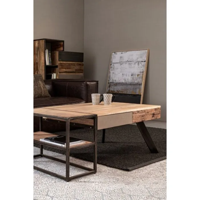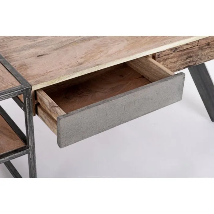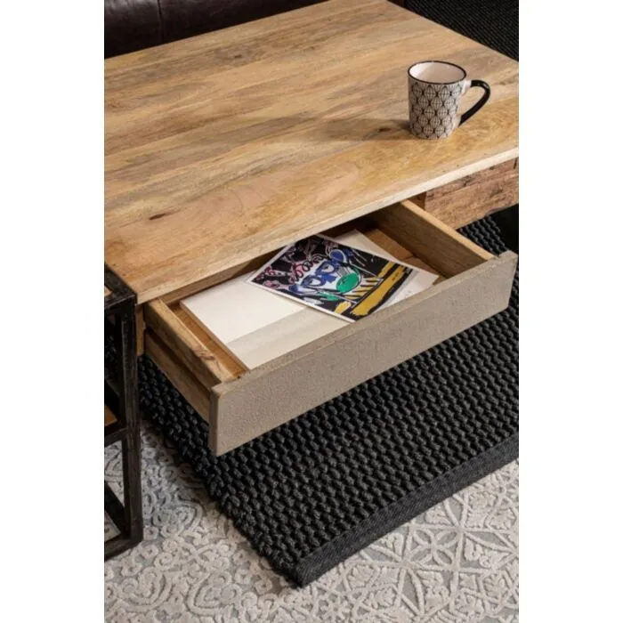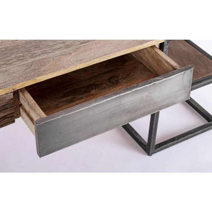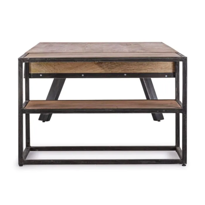 Klubska mizica ima kovinske nogice, ki zagotavljajo stabilnost. Vrh je narejen iz mangovega lesa. Sprednja stran je iz lesa oziroma kovine. Ima zaščitni skrilni premaz. Ima dva predala in police, ki so zelo funkcionalne.