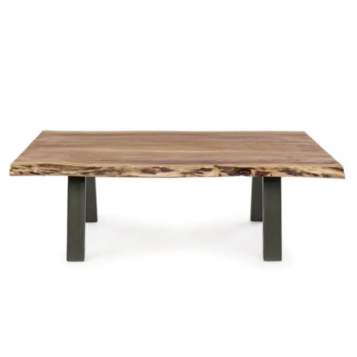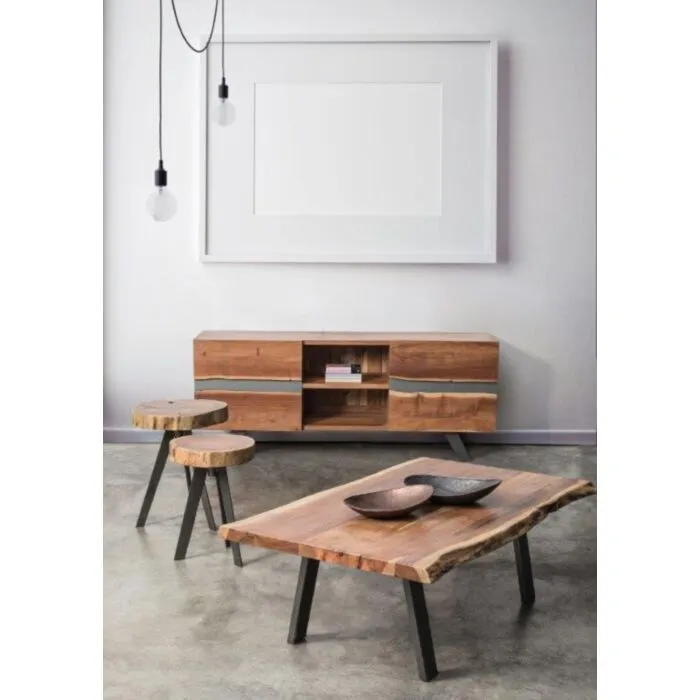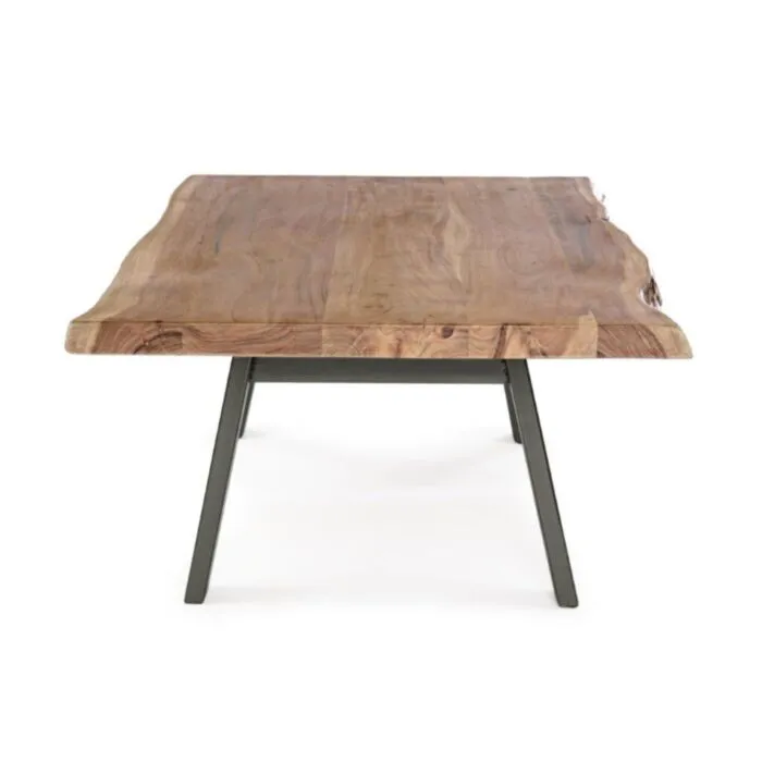 Klubska mizica ARON 115×65 ima kovinske noge in vrh iz lesa ki ima nepravilne robe (učinek živega lesa). Ker je les obdelan ročno, so oblike in velikosti, ki jih tvori les, samo okvirne, vsi predmeti se bodo med seboj razlikovali.
