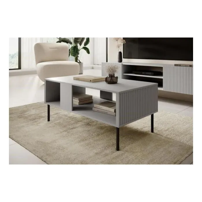 Klubska mizica ASANA, je elegantna in sodobna klubska mizica, izdelana iz laminirane iverne plošče in MDF-ja, s trdnimi kovinskimi nogami. V barvni kombinaciji svetlo sivega ogrodja in črnih nog bo popolnoma dopolnila vsak prostor. S svojim modernim videzom in kakovostno izdelavo nudi odlično kombinacijo estetike in funkcionalnosti za vaš dom.