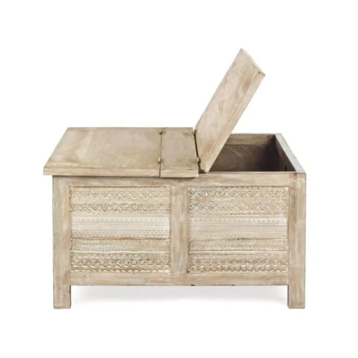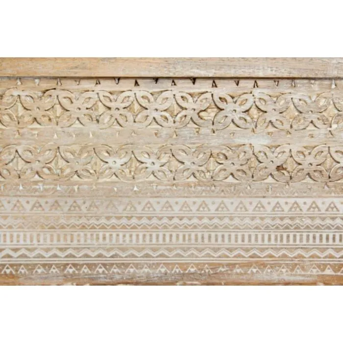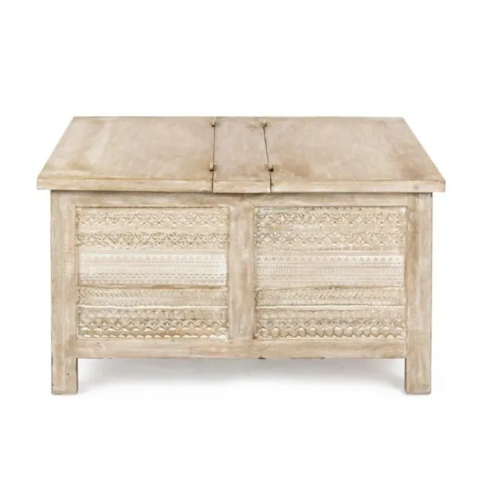 Klubska mizica MAYRA ima okvir iz lesa z ročno izrezanimi okraski, zadnje strani so iz MDF-ja. Imajo medeninaste ročaje. S svojo obliko in motivom se odlično poda v vsak prostor. Prednost mizice je da ima predal v notranjosti mizice v katerega lahko spravite veliko različnih stvari.