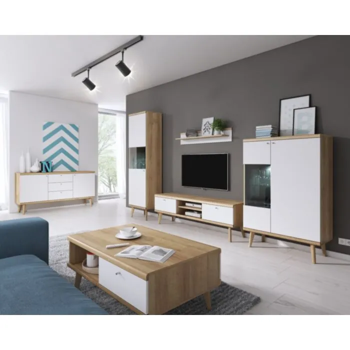 Elementi iz zbirke MORI vam omogočajo, da na zelo zanimiv in praktičen način uredite svojo dnevno sobo. Lahko jo kombinirate z ostalimi deli iz serije MORI. Kombinacija hrasta in bele barve naredita popolen sijaj.