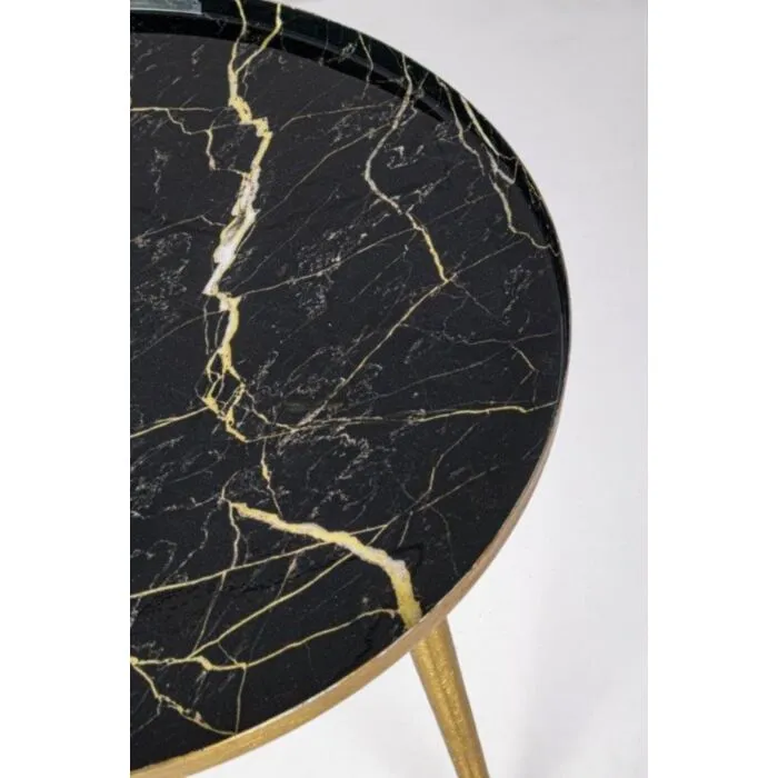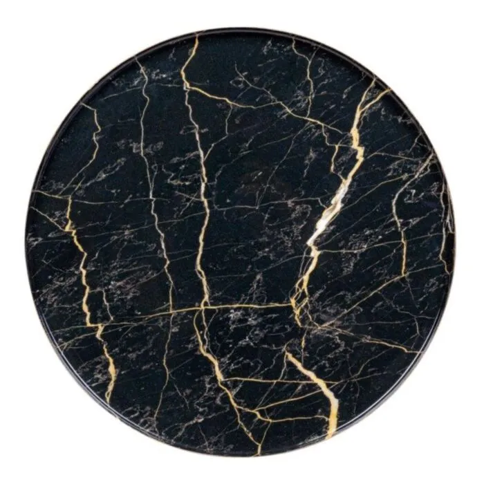Klubska miza NILIMI ima aluminijaste noge, mizna plošča je kovinska z emaljiranim zaključkom.