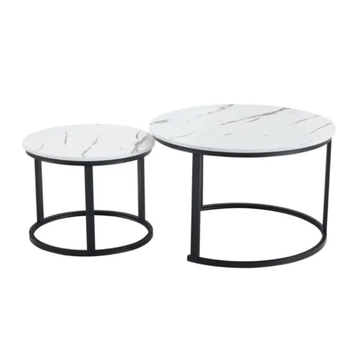 Klubska mizica TOYA bela / marmor je primerna za vsak dnevni prostor. Posebna je zaradi svoje oblike nogic ter možnosti medsebojnega kombiniranja. Zaradi svoje velike površine vam bo prišla še kako prav. Z lahkoto jo kombinirate na vso ostalo pohištva prav zaradi svoje nevtralne barve belega marmorja s kombinacijo črnega podnožja. Mizici lahko uporabljate skupaj ali ločeno.