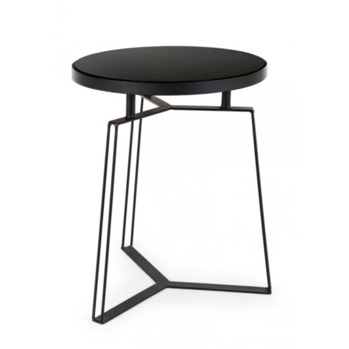 Klubska mizica ZAIRA D40 črna ima jekleno okvirje in stekleni vrh.