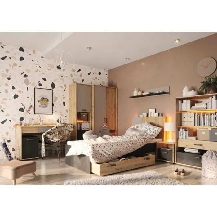 Knjižna omara KINDER je eleganten kos pohištva, ki popestri vaš prostor. Njen poseben dizajn vas bo navdušil, saj prinese vašemu prostoru eleganco in prefinjenost.