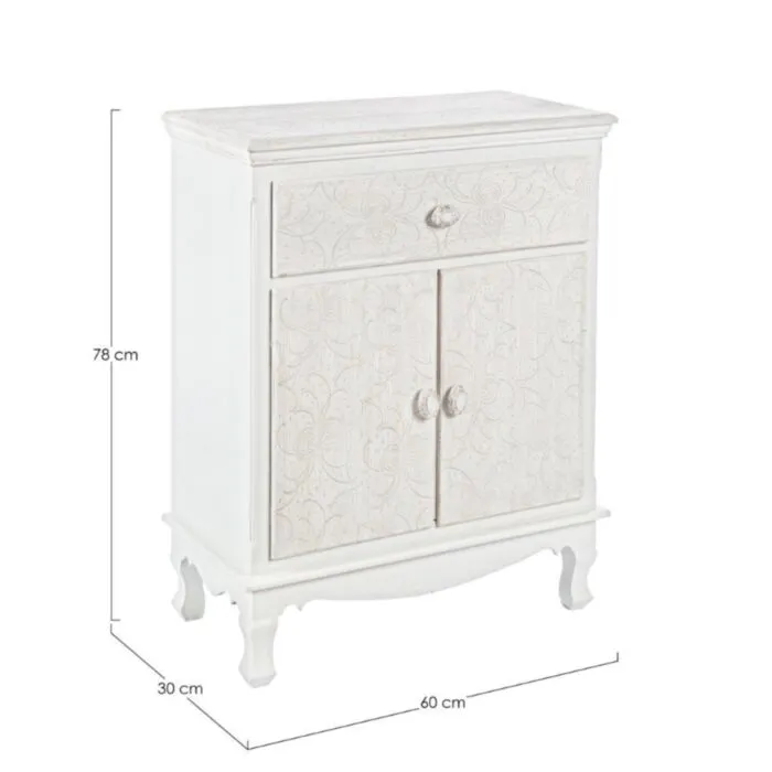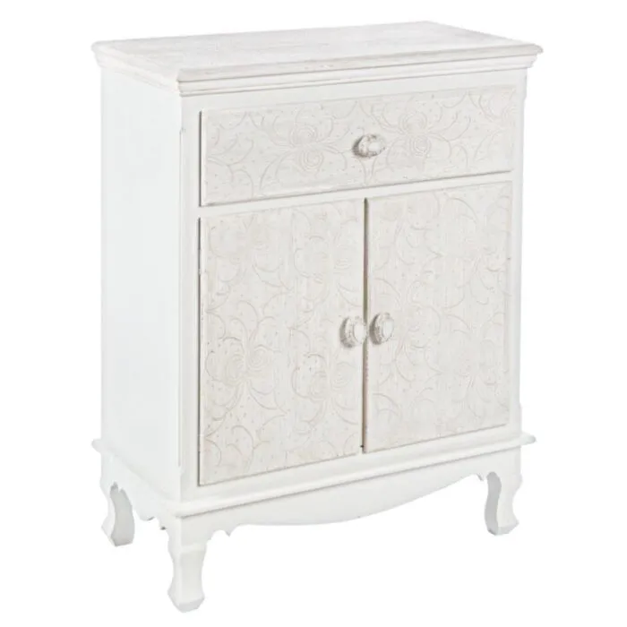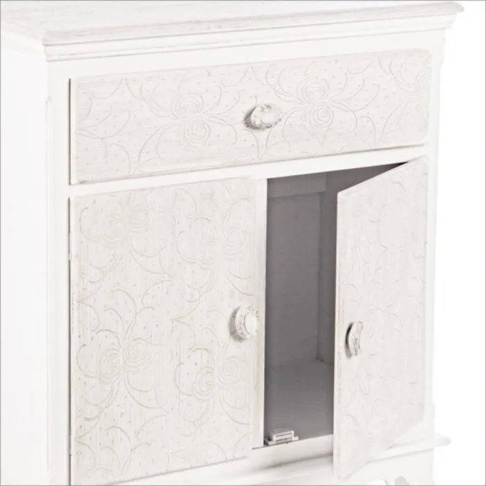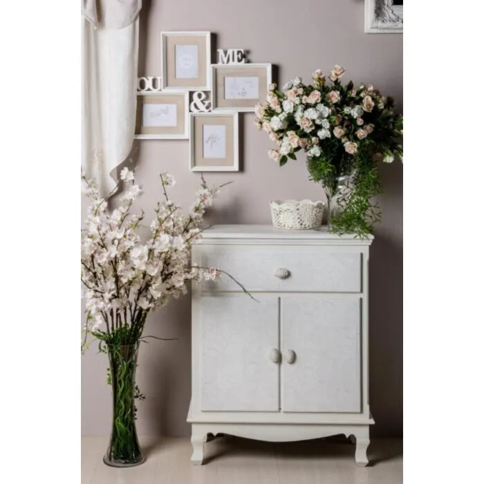 Komoda 2A-1C CLORINE, je eleganten kos pohištva, ki popestri vaš prostor. S svojim posebnim dizajnom cvetličnih vzorcev na vratih komode, popestri in prinese eleganco v vaš prostor. Narejena je iz MDF-ja.