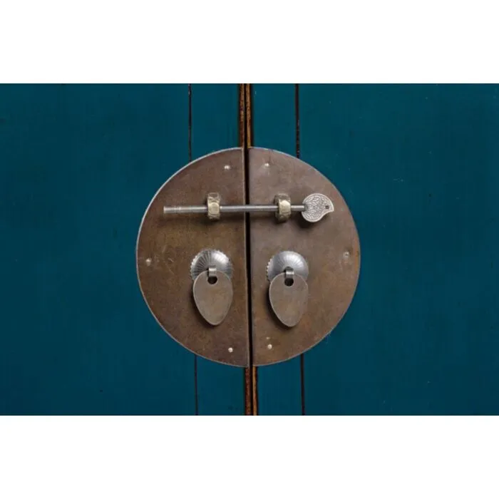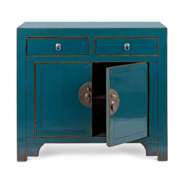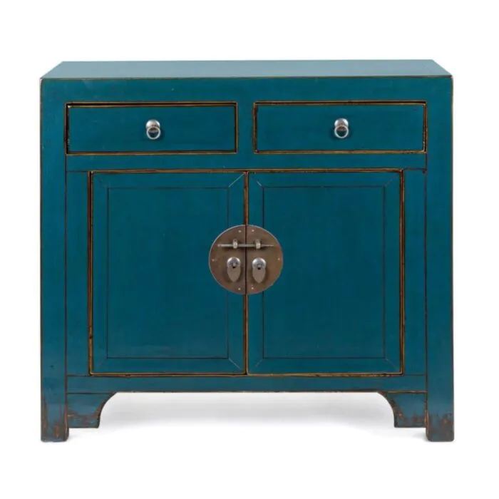 Komoda 2A-2C JINAN modra je narejena iz lesa. Ima bakrene ročaje