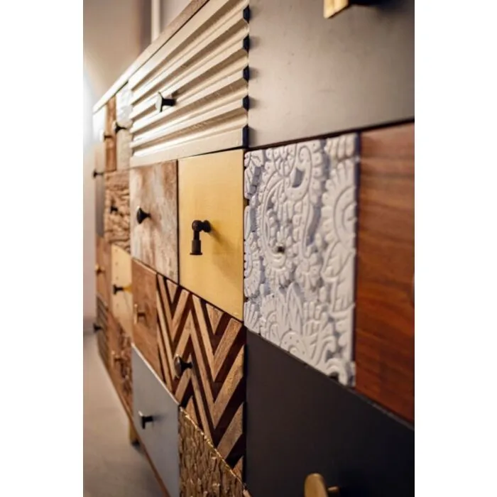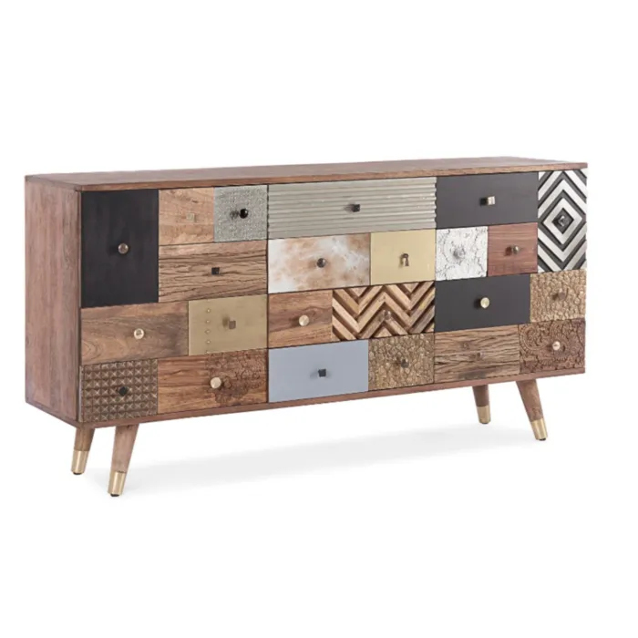 Komoda 2A-4C DHAVAL ima okvir iz lesa in MDF-ja. Ročaji so iz kovine. Narejena je iz kakovostnega mangovega in akacijevega lesa. Ima veliko funkicionalnih predalov, v katere lahko shranite marsikaj. Predali so različne velikosti ter različnega dizajna, kar popestri vsak prostor s svojo prefinjenostjo.