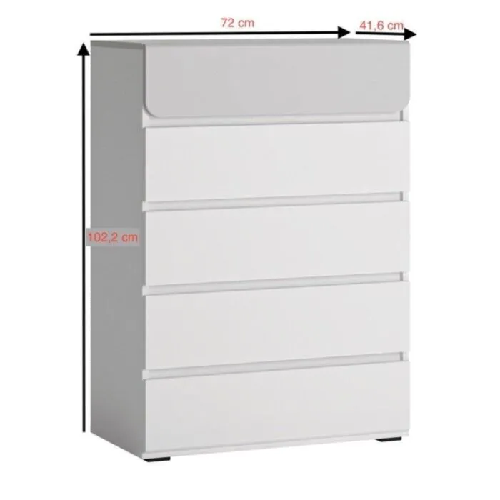 Komoda ALBA 2, je eleganten kos pohištva, ki popestri vaš prostor. Njen poseben dizajn vas bo navdušil, saj prinese vašemu prostoru eleganco in prefinjenost. Ima 5 prostornih predalov za shranjevanje.
