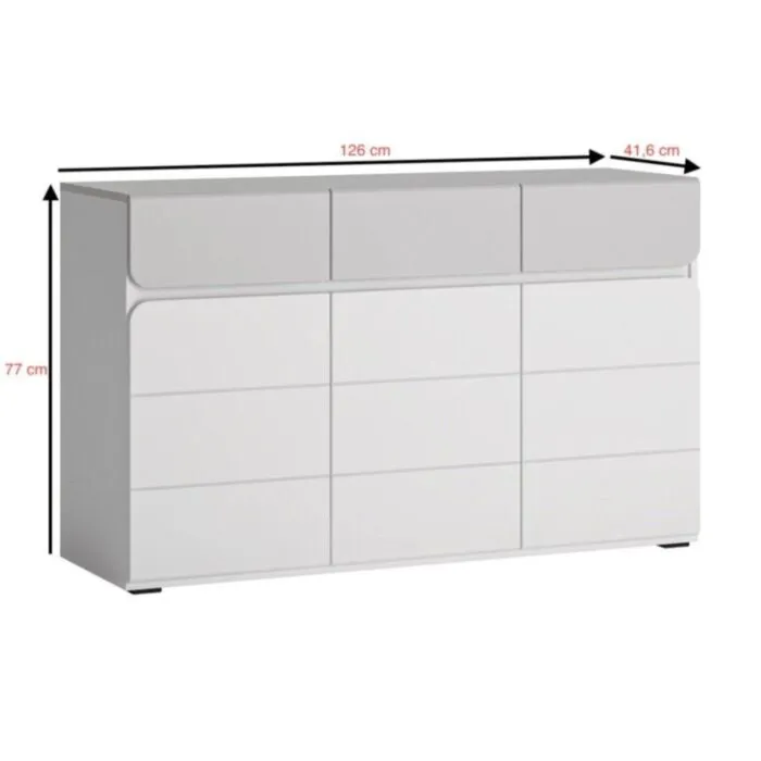 Komoda ALBAje eleganten kos pohištva, ki popestri vaš prostor. Njen poseben dizajn vas bo navdušil, saj prinese  vašemu prostoru eleganco in prefinjenost. Izdelana je iz kakovostnega MDF-ja. Ima ABS robove, kar zagotavlja daljšo življenjsko dobo.