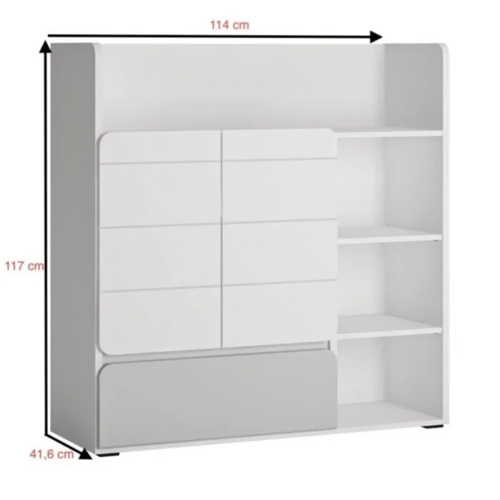 Komoda ALBA, je eleganten kos pohištva, ki popestri vaš prostor. Njen poseben dizajn vas bo navdušil, saj prinese vašemu prostoru eleganco in prefinjenost.