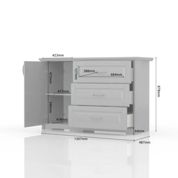 – D: 131 cm x V: 88 cm x G: 48 cm