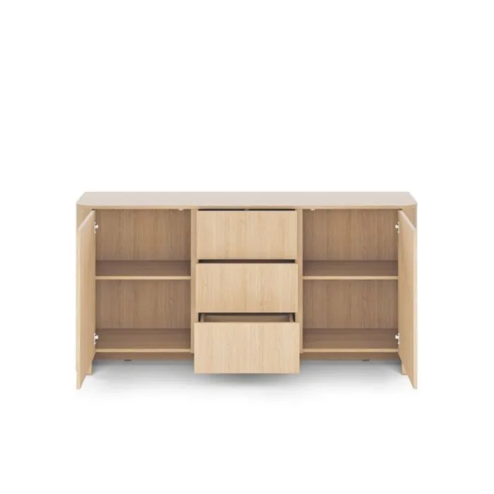 Komoda BARBA 2 hrast je elegantna in preprosta. S svojo obliko in kakovostjo se poda v vsak dnevni prostor. Narejena je it kakovostnega MDF-ja. Ima nogice posebne oblike, zato zagotavljajo še dodatno stabilnost. Zaradi svoje oblike in visokokakovostnih materialov je trpežna in vzdržljiva. Odporna je na praske, udarce in obrabo. Je enostavna za vzdrževanje, saj je površina preprosta za čiščenje in negovanje.