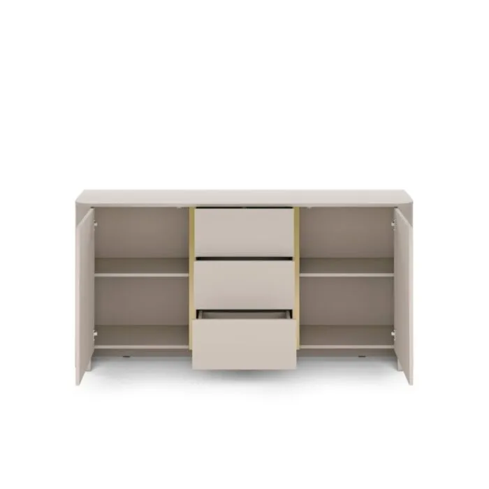 Komoda BARBA 2 kašmir je elegantna in preprosta. S svojo obliko in kakovostjo se poda v vsak dnevni prostor. Narejena je it kakovostnega MDF-ja. Ima nogice posebne oblike, zato zagotavljajo še dodatno stabilnost. Zaradi svoje oblike in visokokakovostnih materialov je trpežna in vzdržljiva. Odporna je na praske, udarce in obrabo. Je enostavna za vzdrževanje, saj je površina preprosta za čiščenje in negovanje.