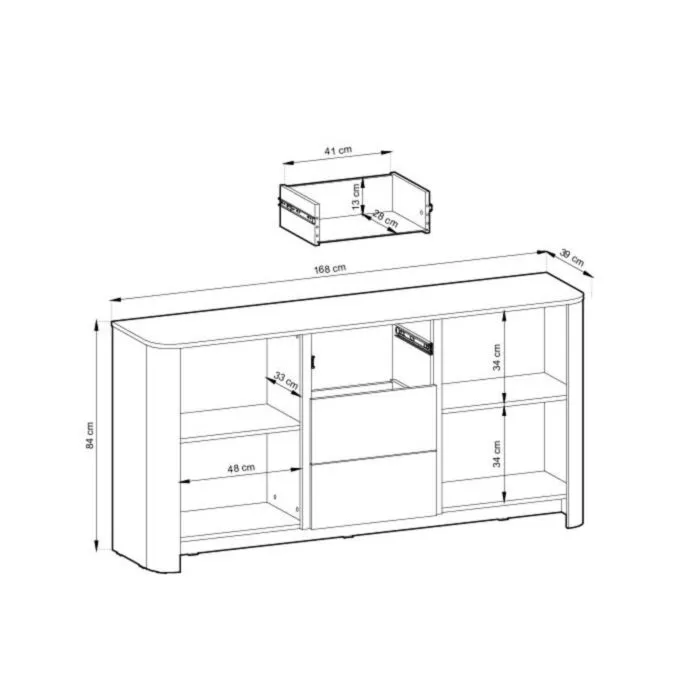 Estetsko se poda v vsak prostor ter ima dobro odpornost na madeže in vlago. Ima ABS robove, ki zagotavljajo večjo odpornost proti udarcem, vlagi in obrabi ter podaljšujejo njeno življenjsko dobo. ABS robovi ne le ščitijo pred poškodbami, ampak poskrbijo tudi za lepši in elegantnejši videz pohištva. Dodatna prednost komode je njena prostornost, vanjo lahko spravite veliko stvari in s tem poskrbiste za dodatno organizacijo in urejenost. Ima sistem odpiranja “PUSH TO OPEN”, kar zagotavlja enostavno odpiranje in zapiranje omarice, brez da bi imela nepotrebne ročaje.