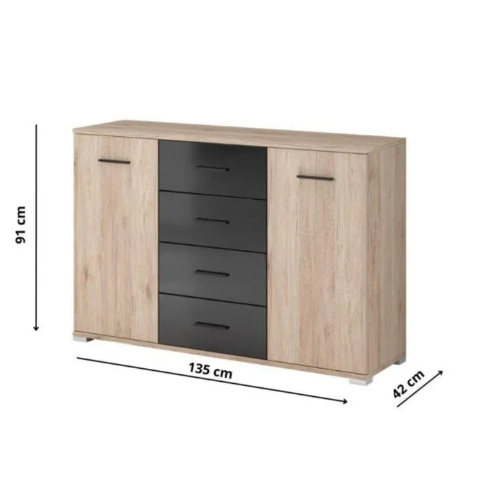 Komoda DULE 2 je eleganten kos pohištva, ki popestri vaš prostor. Njen poseben dizajn vas bo navdušil, saj prinese vašemu prostoru eleganco in prefinjenost.