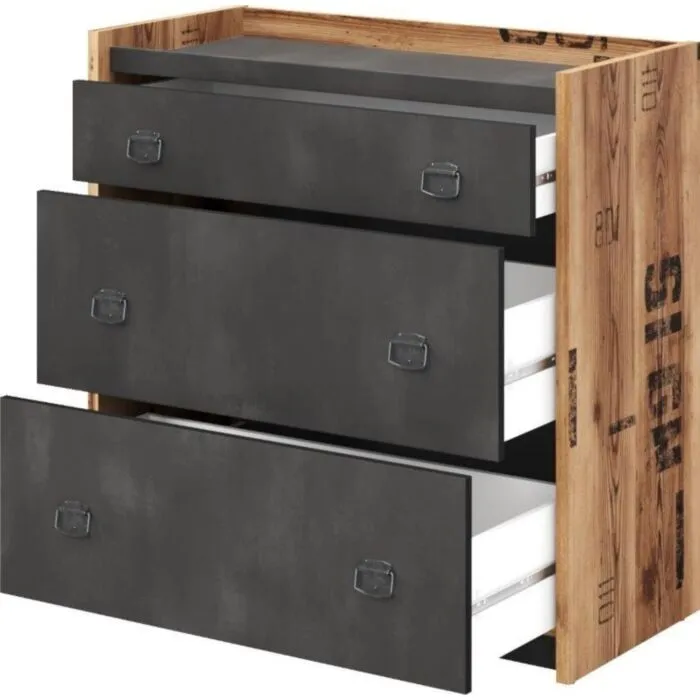 Komoda FERGO je primerna za vsak prostor. Je modernega in elegantnega izgleda. Ima tri prostorne predale. Narejena je iz kakovostne laminirane plošče in ABS robov.