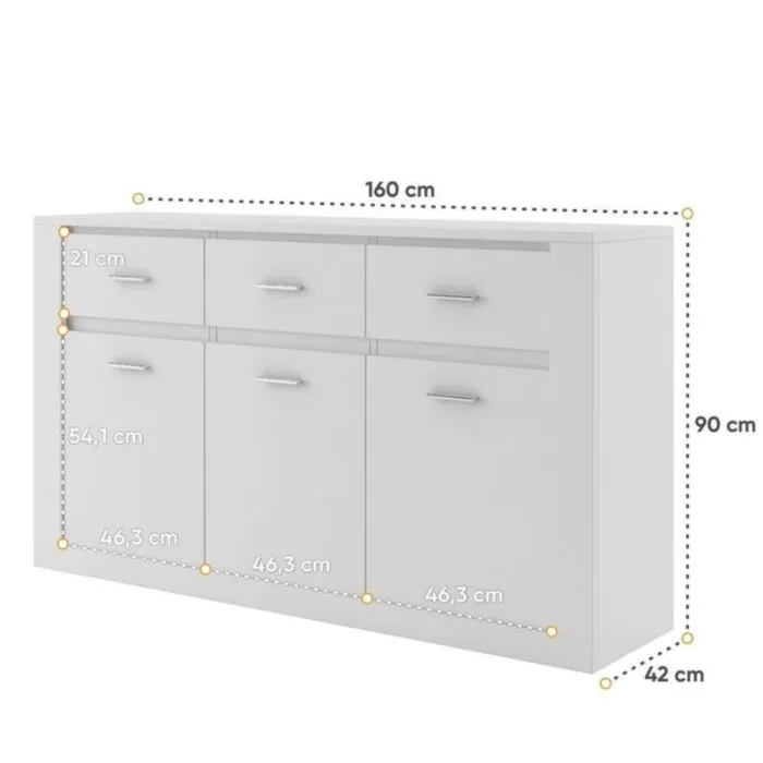 – D: 160 cm x G: 42 cm x V: 90 cm