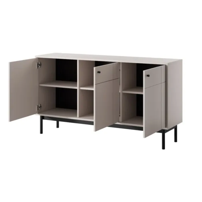 Komoda JAPONI 154 kašmir je elegantna in preprosta. Odlično se poda v vsak dnevni prostor. Narejena je iz visokokakovostnih materialov, kar zagotavlja trdnost in dolgo življenjsko dobo. Ima ABS robove, ki zagotavljajo večjo odpornost proti udarcem, vlagi in obrabi ter podaljšujejo njeno življenjsko dobo. ABS robovi ne le ščitijo pred poškodbami, ampak poskrbijo tudi za lepši in elegantnejši videz pohištva. Zaradi svoje oblike in visokokakovostnih materialov je trpežna in vzdržljiva. Odporna je na praske, udarce in obrabo. Je enostavna za vzdrževanje, saj je površina preprosta za čiščenje in negovanje. Estetsko se poda v vsak prostor ter ima dobro odpornost na madeže in vlago.
