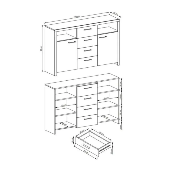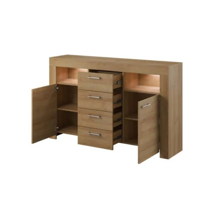Komoda KYS je eleganten kos pohištva, ki popestri vaš prostor. Njen poseben dizajn vas bo navdušil, saj prinese vašemu prostoru eleganco in prefinjenost. Za dodatno eleganco in vzdušje lahko dokupite LED razsvetljavo za 23,10 eur.