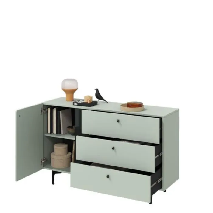 Komoda OLUR 4 je eleganten kos pohištva, ki popestri vaš prostor. Njen poseben dizajn vas bo navdušil, saj prinese vašemu prostoru eleganco in prefinjenost.