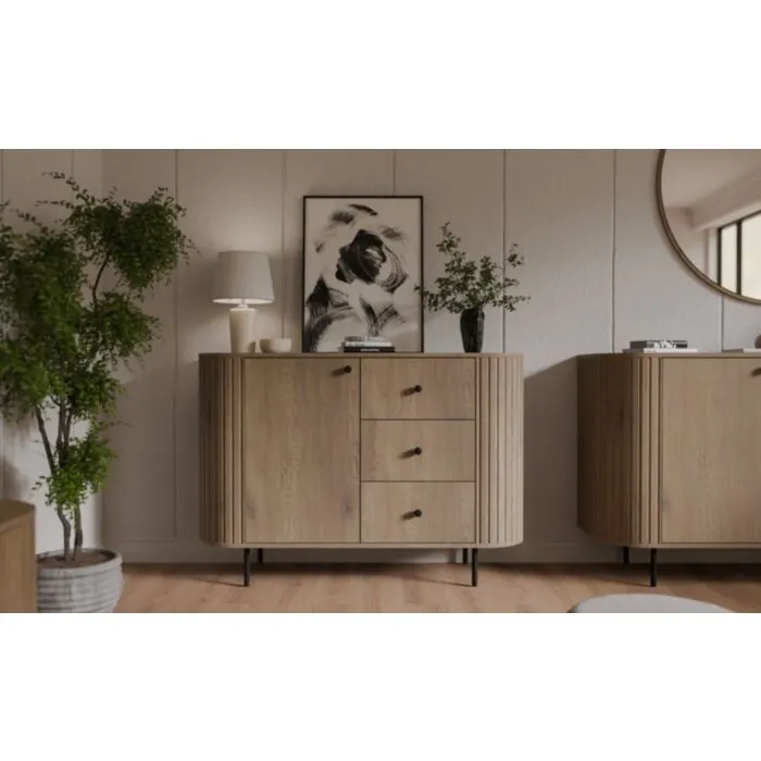 Komoda OVARI mini je zaradi svoje oblike in visokokakovostnih materialov trpežna in vzdržljiva. Odporna je na praske, udarce in obrabo. Je enostavna za vzdrževanje, saj je površina preprosta za čiščenje in negovanje. Estetsko se poda v vsak prostor ter ima dobro odpornost na madeže in vlago. Dobavljiva je v hrast ali bež barvi.