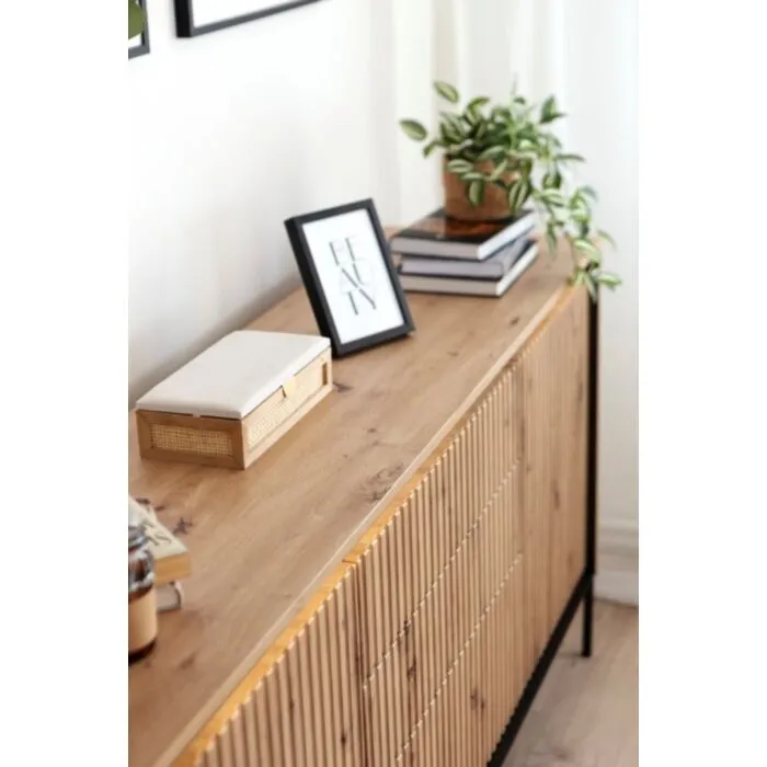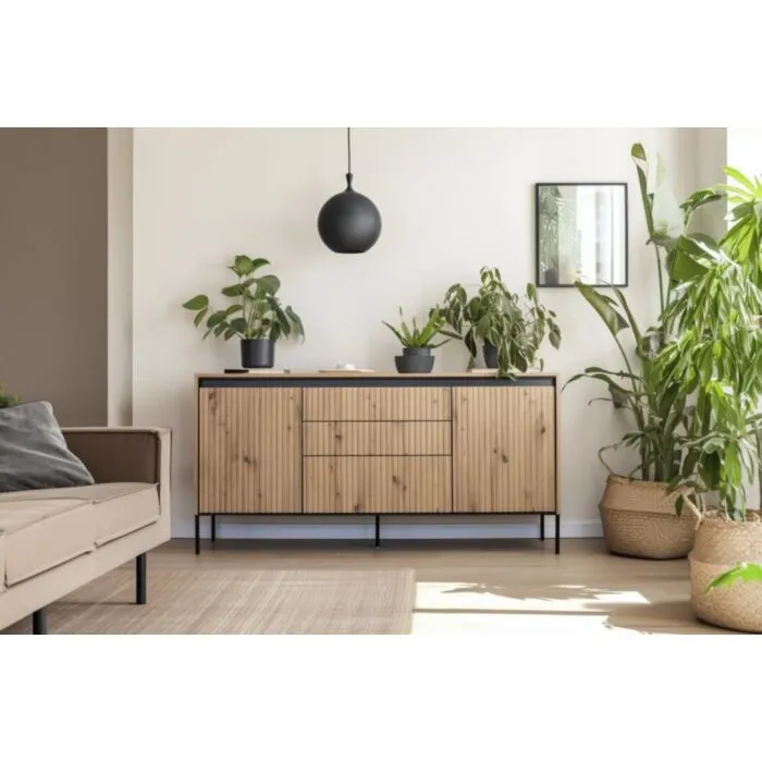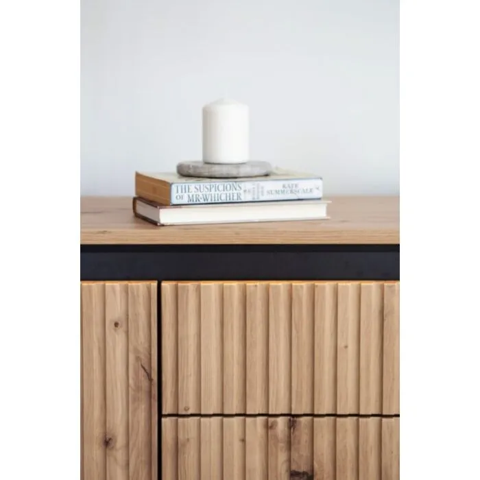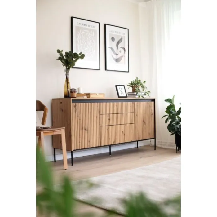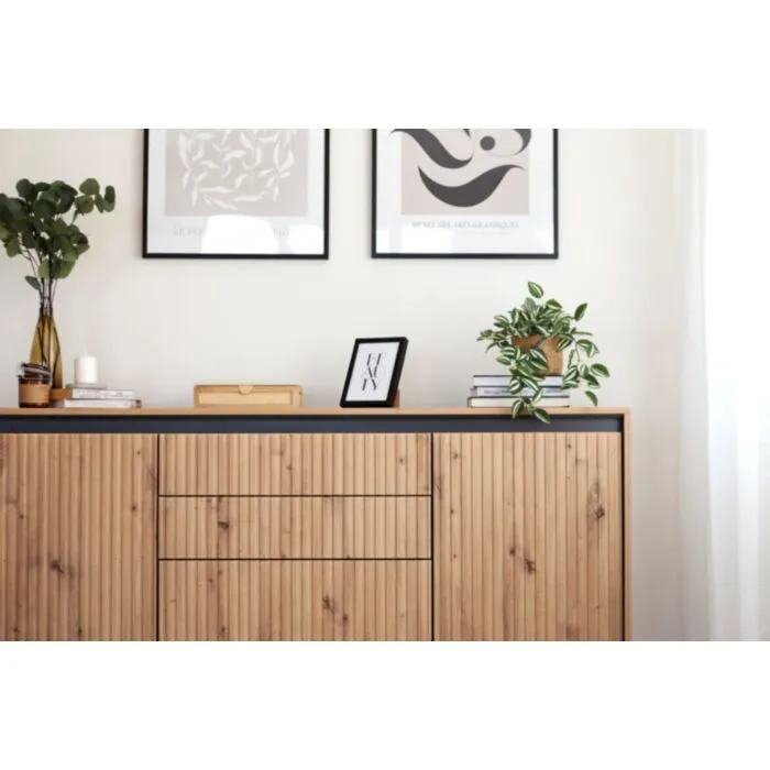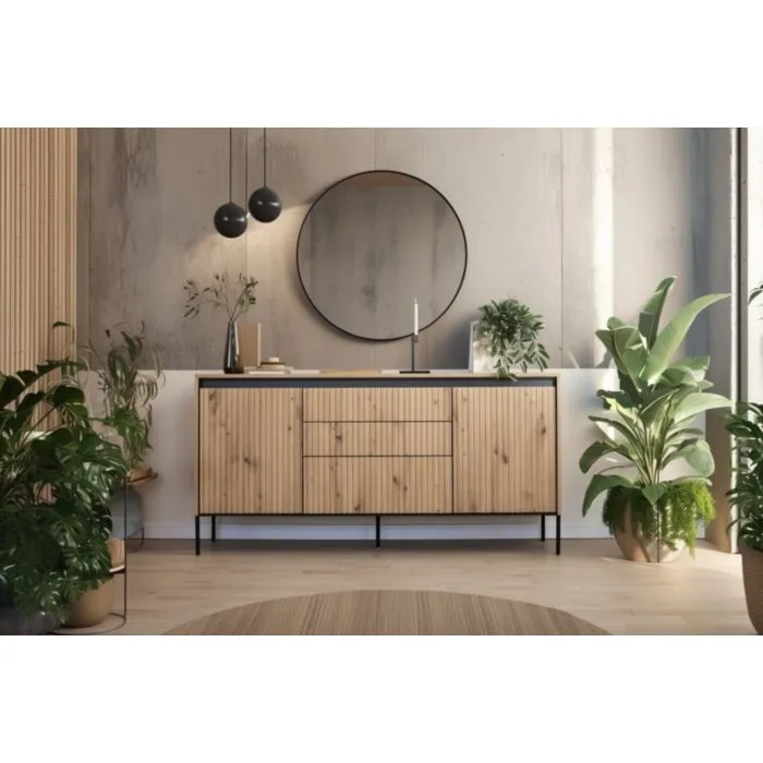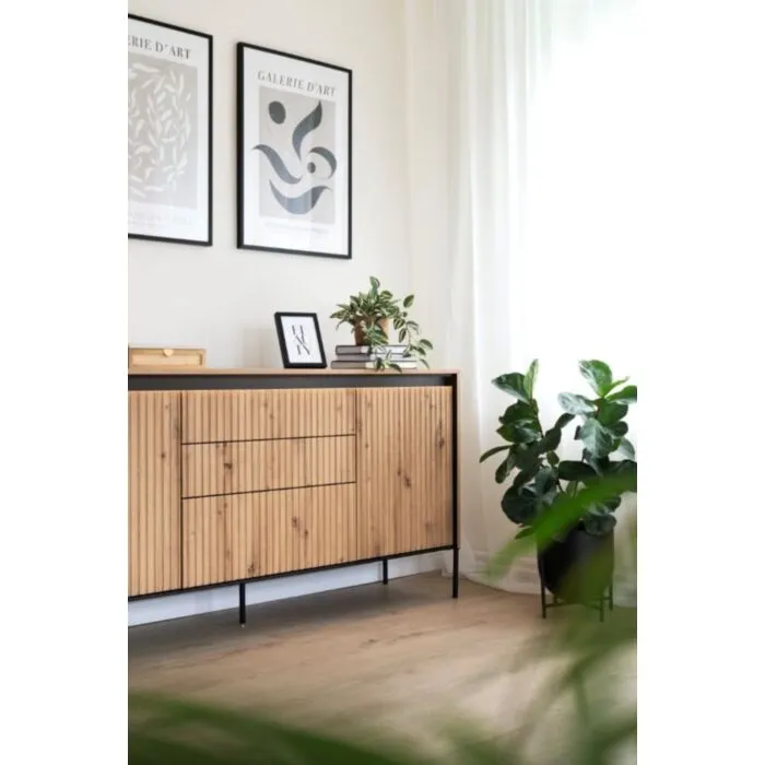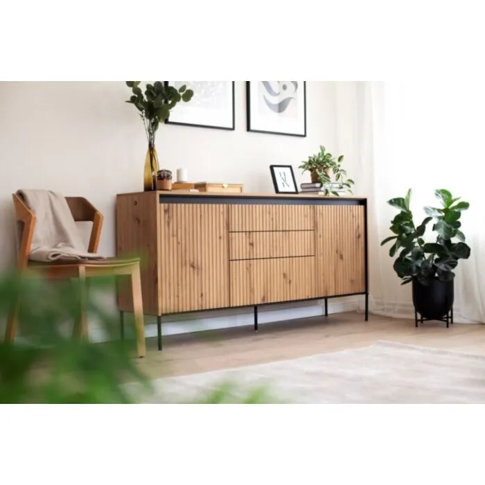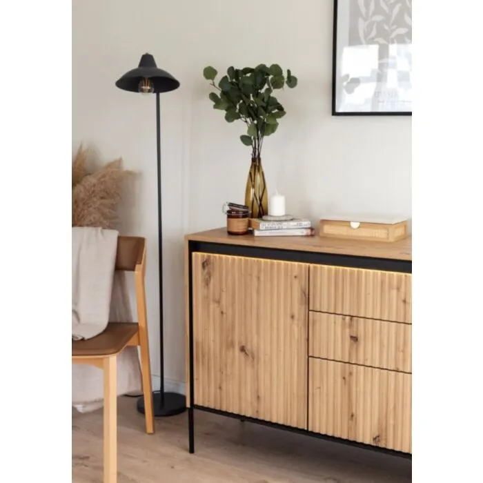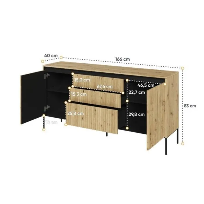 Komoda TERA, združuje funkcionalnost z izjemnim dizajnom. Komoda ne bo le zadovoljila vaših potreb po shranjevanju, temveč bo pritegnila pozornost tudi s svojim edinstvenim slogom. Njeno obliko in eleganten dizajn dodatno poudarja LED osvetlitev. Ta edinstven vzorec doda komodi edinstven značaj. Ima predale, kateri so idealni za shranjevanje različnih stvari, oblek ali drugih pomembnih stvari.