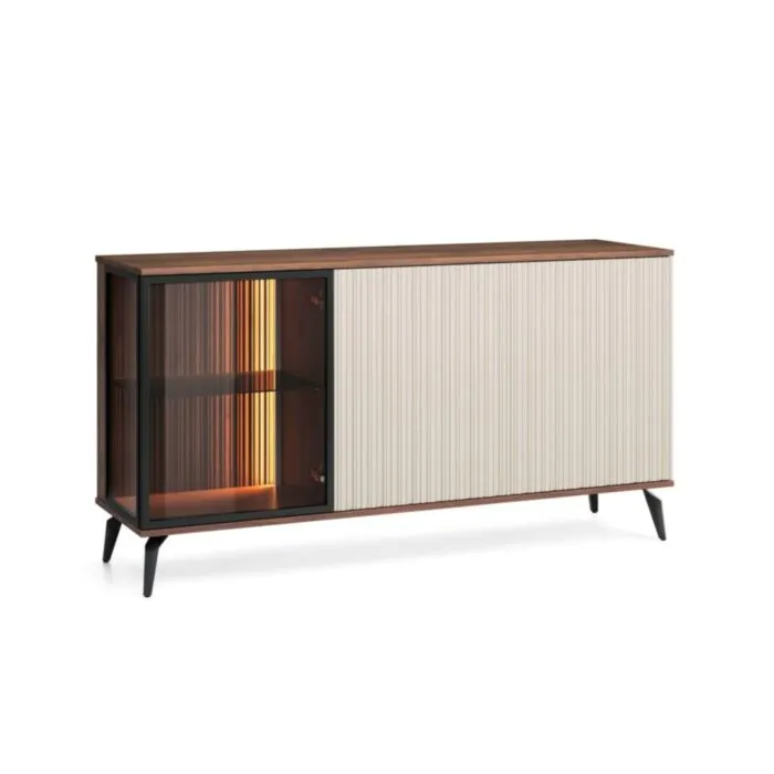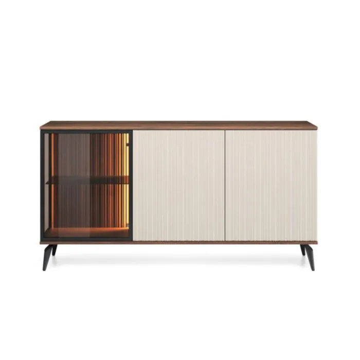 Komoda VILMA je sodobna in elegantna. Narejena je iz kakovostnega MDF-ja in visokokakovostnega stekla. Zaradi svoje oblike in visokokakovostnih materialov je trpežna in vzdržljiva. Odporna je na praske, udarce in obrabo. Je enostavna za vzdrževanje, saj je površina preprosta za čiščenje in negovanje.