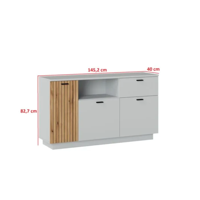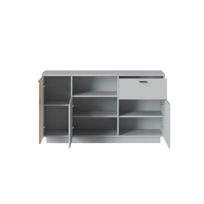 Komoda VIVIJA je eleganten kos pohištva, ki popestri vaš prostor. Njen poseben dizajn vas bo navdušil, saj prinese vašemu prostoru eleganco in prefinjenost. Izdelana je iz kakovostne iverne plošče.