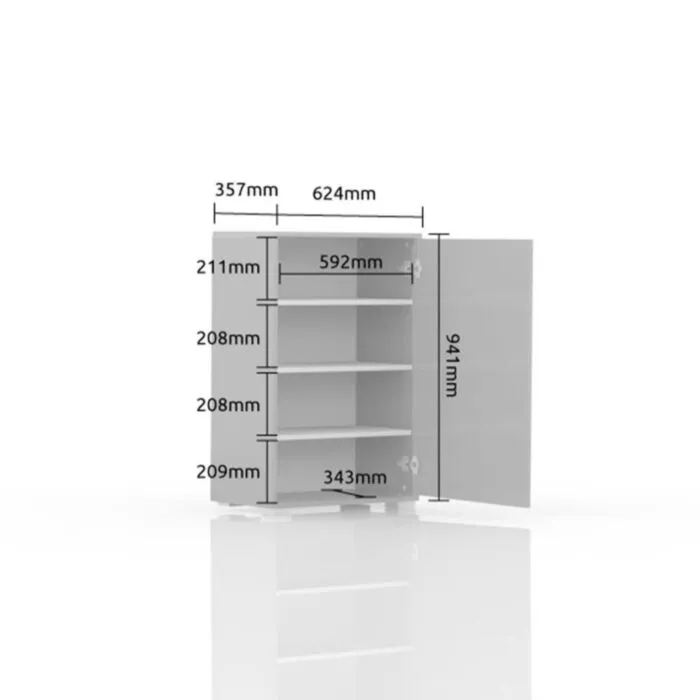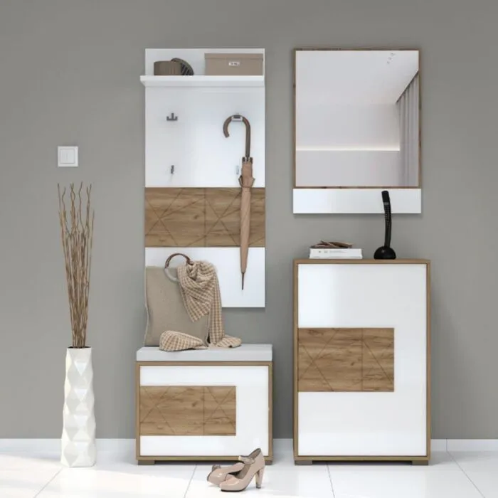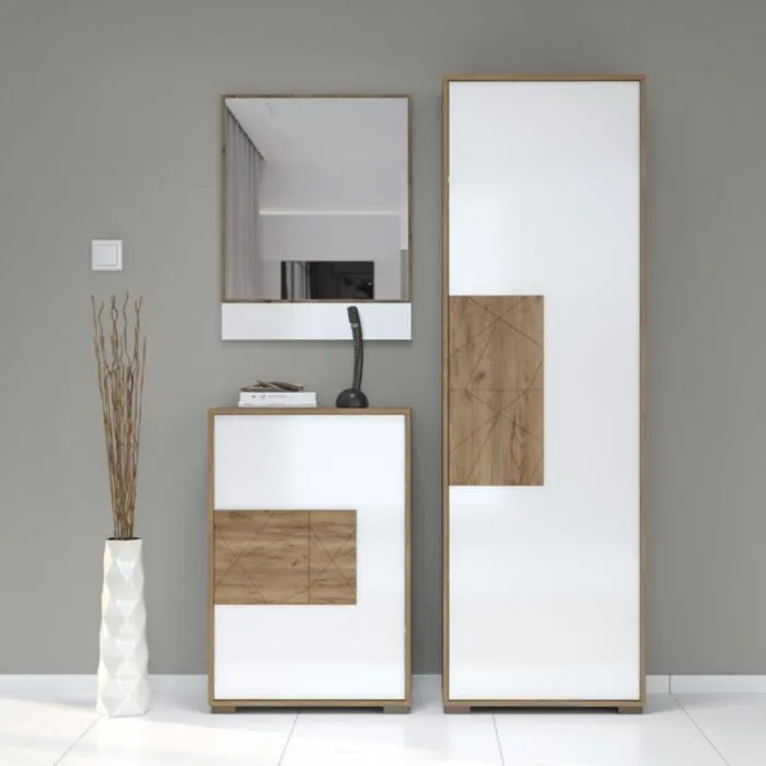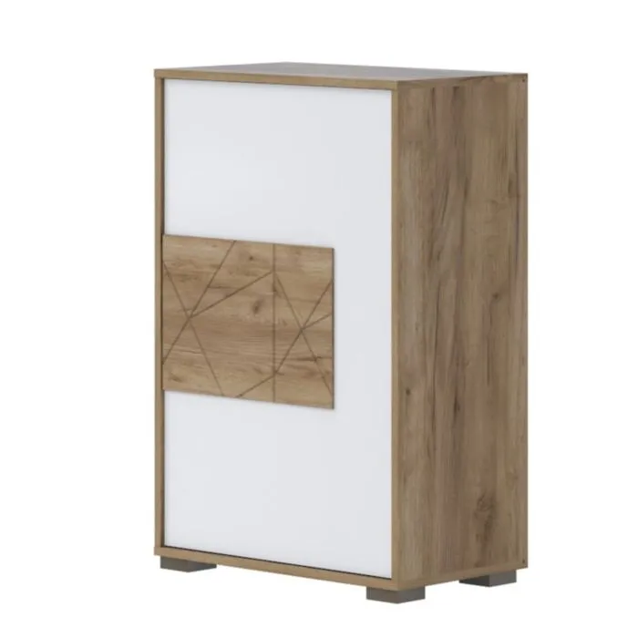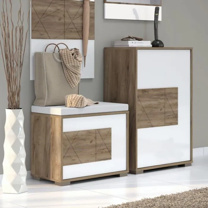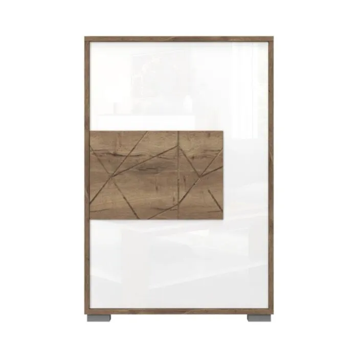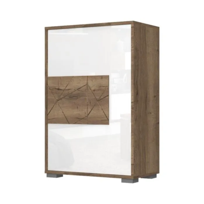 Komoda za čevlje VIŠNJA je narejena iz odličnih materialov. Ima “push to open” sistem za odpiranje in zapiranje. Ličnice so debeline 16mm. S svojo eleganco in obliko popestri vsak prostor. Narejena je iz vezane plošče v barvi hrasta s kombinacijo barve bele visoki sijaj.