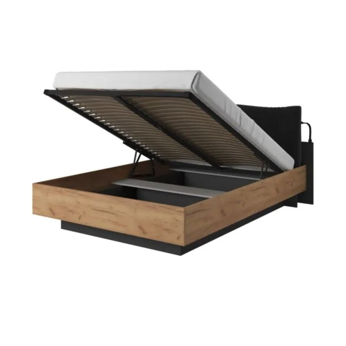 Vzmetnica, dvižno dno postelje s predalom in LED osvetlitev niso vključeni v ceno.