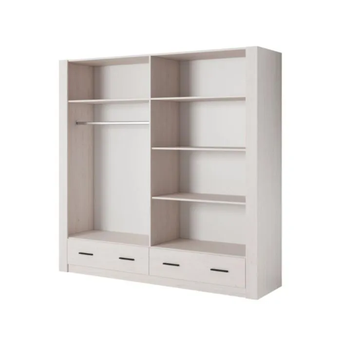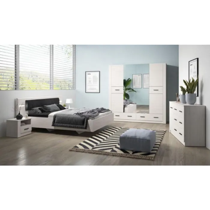 Elegantna in moderna spalnica KATARINA je narejena iz kvalitetnih materialov. Sestavljena je iz dvo delne omare, postelje z dvema nočnimima omaricama in komode. Postelja vsebuje LED razsvetljavo.