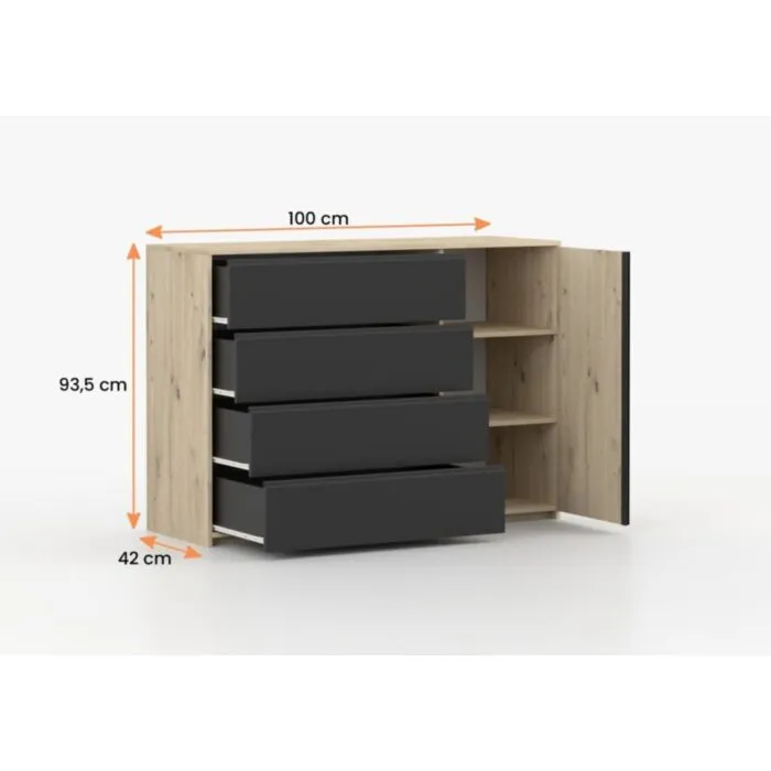 Komoda: D: 100 cm x G: 42 cm x V: 93,5 cm