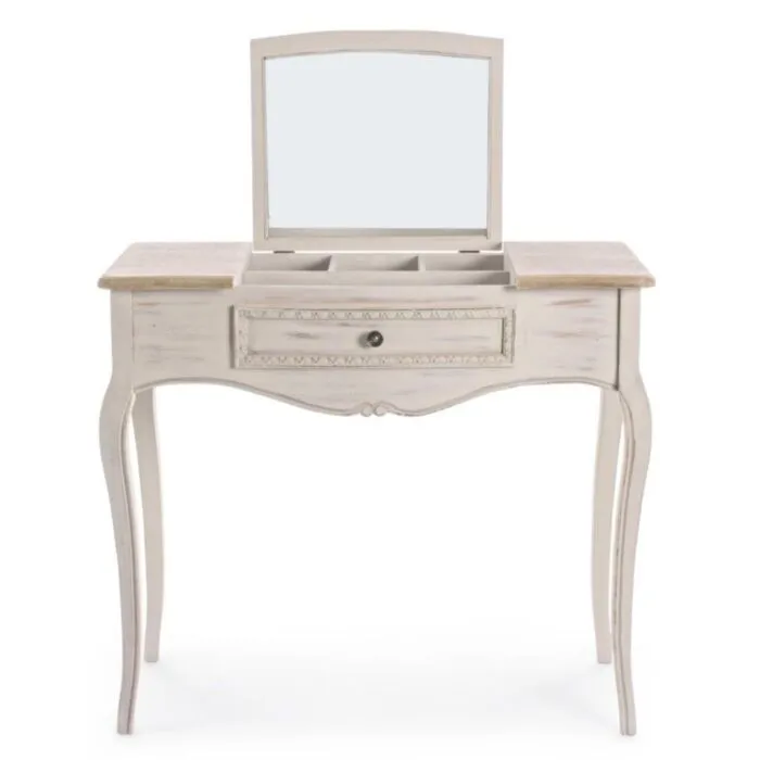 Konzola z ogledalom CLARISSE, je eleganten kos pohištva, ki popestri vaš prostor. Njen poseben dizajn vas bo navdušil, saj prinese  vašemu prostoru eleganco in prefinjenost.