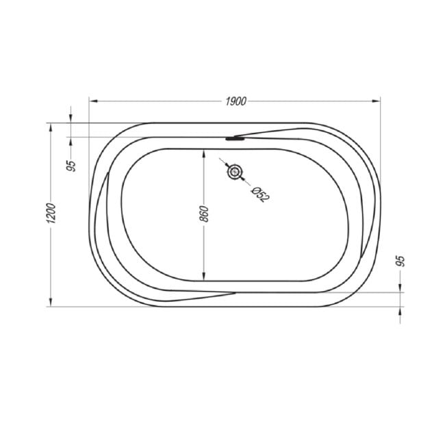 Samostoječa kopalna s prelivno garnituro iz litega sanitarnega akrila razkošnih dimenzij za popolno udobje – tudi v dvoje. Kad in obloga sta narejeni iz enega dela. Možnost vgradnje zračnega masažnega sistema.