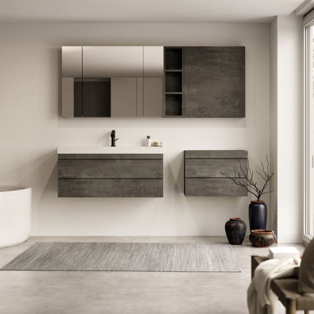 Samostojna zaprta kopalniška omarica Kolpa san N 702/600/20 DC iz linije Naomi je v barvi temenega betona. Kopalniška omarica se lahko namesti samostojmo, ali pa jo kombinirate poled odprte omarice N 700/13 DC oz. ogledala. Dimenzija kopalniške omarice je ( Š x V x G) 590 x 700 x 200 mm.