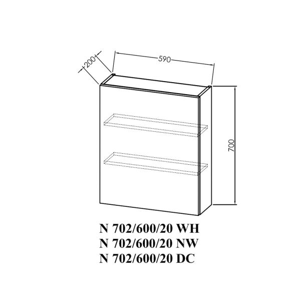 Tehnične lastnosti visoke omarice Kopla san N 702/600/20 NW: