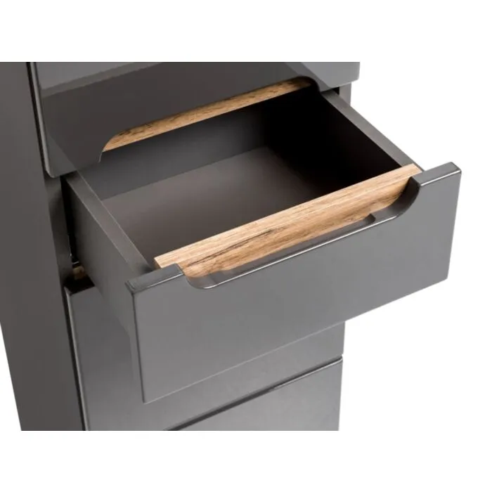 Kopalniški blok ALI 2 60 je odlične kvalitete, narejen iz kakovostnih materialov. Vsebuje umivalnik, omarico pod umivalnikom, omarico z ogledalom, veliko samostojno pokončno omaro, malo pokončno omarico ter malo visečo omarico. Kopalniški blok ima mehko zapiranje.